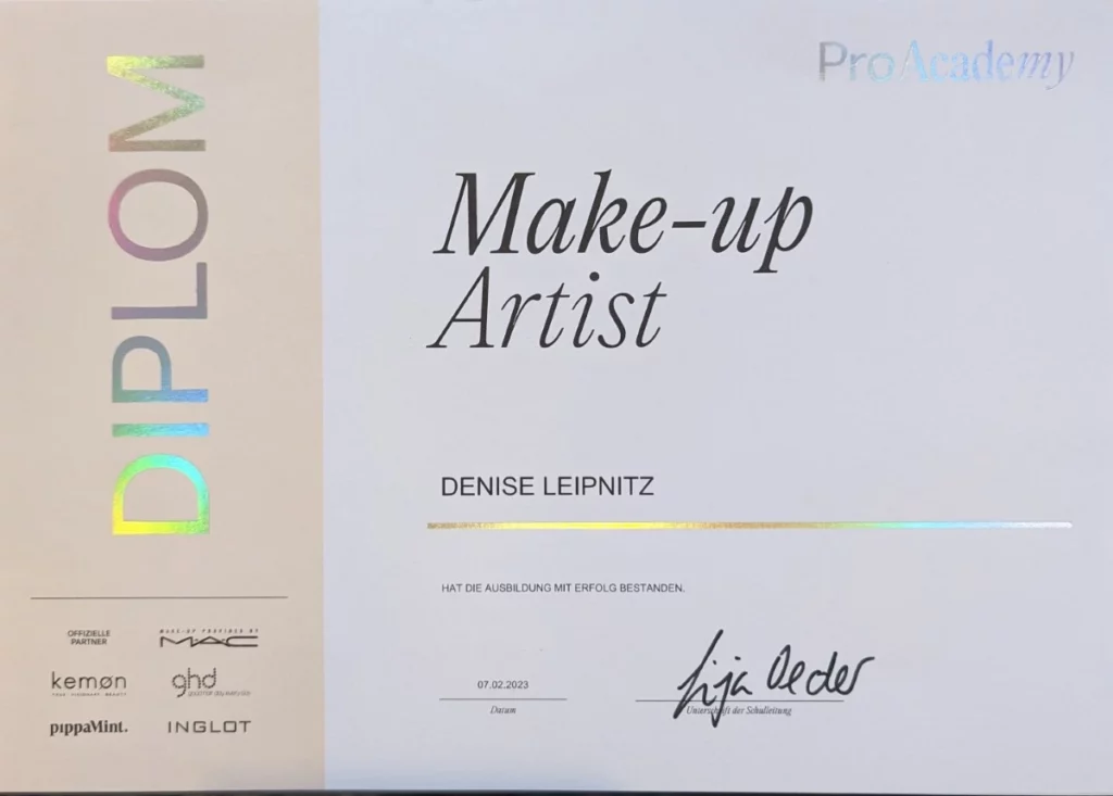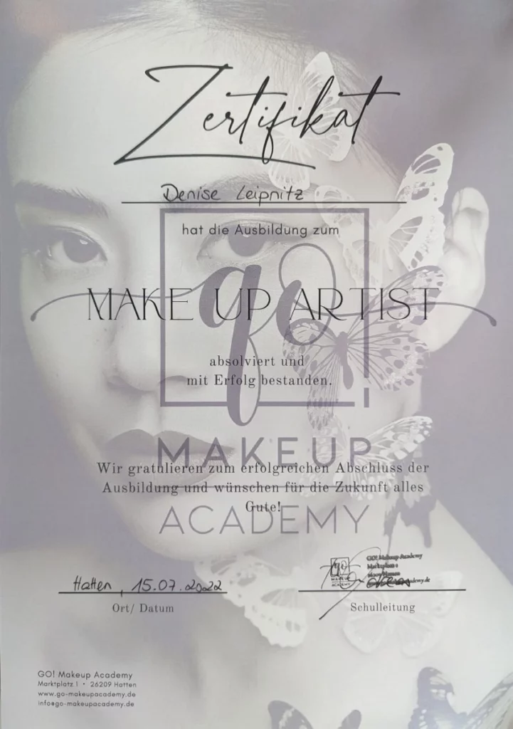 Meine Ausbildung zur professionellen Make-up Artist, Visagist und Hairstylist hat mir das Fundament gegeben, um Looks zu kreieren, die nicht nur Trends folgen, sondern vor allem die individuelle Persönlichkeit betonen.