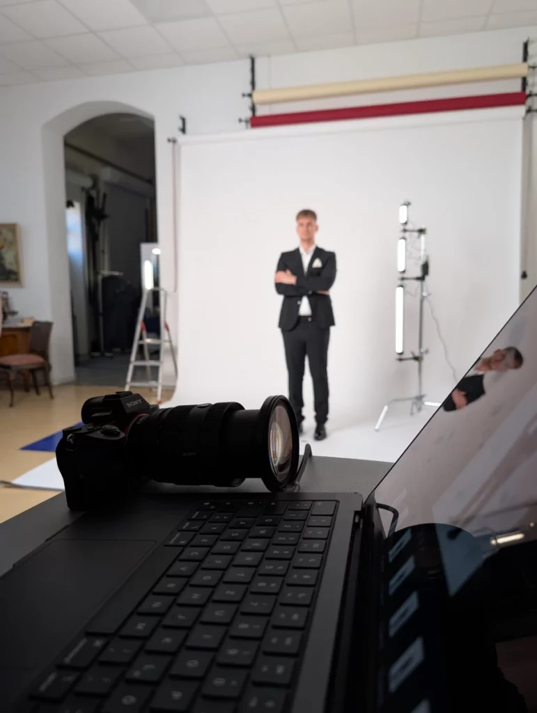 Make-up, Licht und Outfit greifen perfekt ineinander – für harmonische, professionelle Aufnahmen ohne Stilbruch.